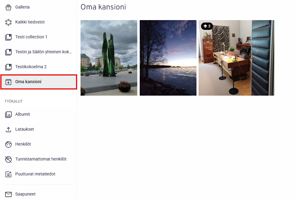 Kun kuva lisätään Omaan kansioosi, se piilotetaan muilta käyttäjiltä.