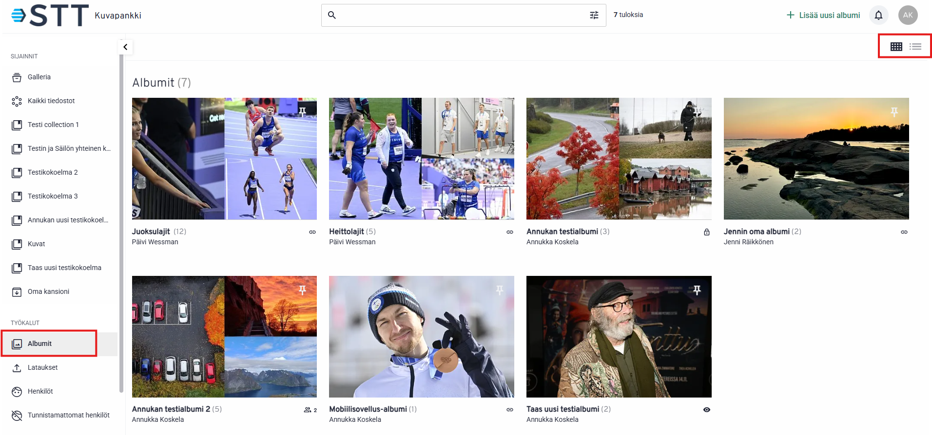 1. Ruudukkonäkymässä näet albumit kansikuvan kanssa: