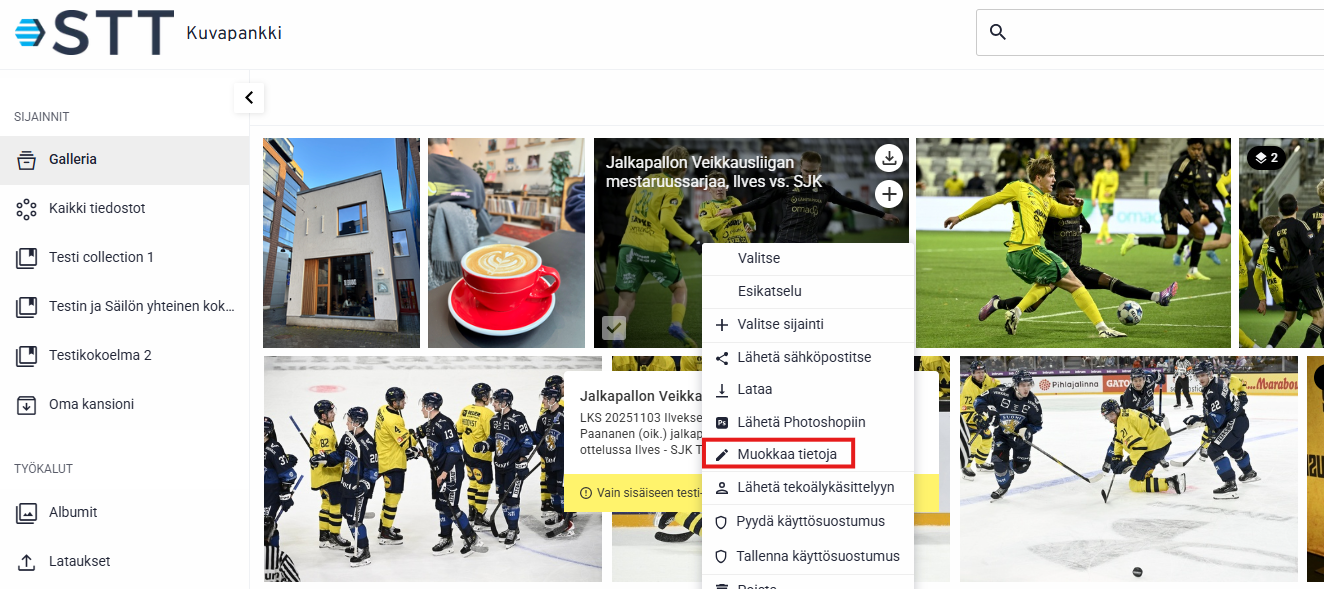Klikkaa kuva auki hiiren oikealla painikkeella, ja valitse Muokkaa tietoja.