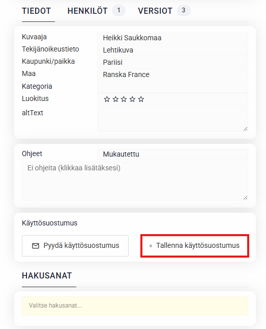 Käyttösuostumusliitteen voi ladata suoraan kuvaan.