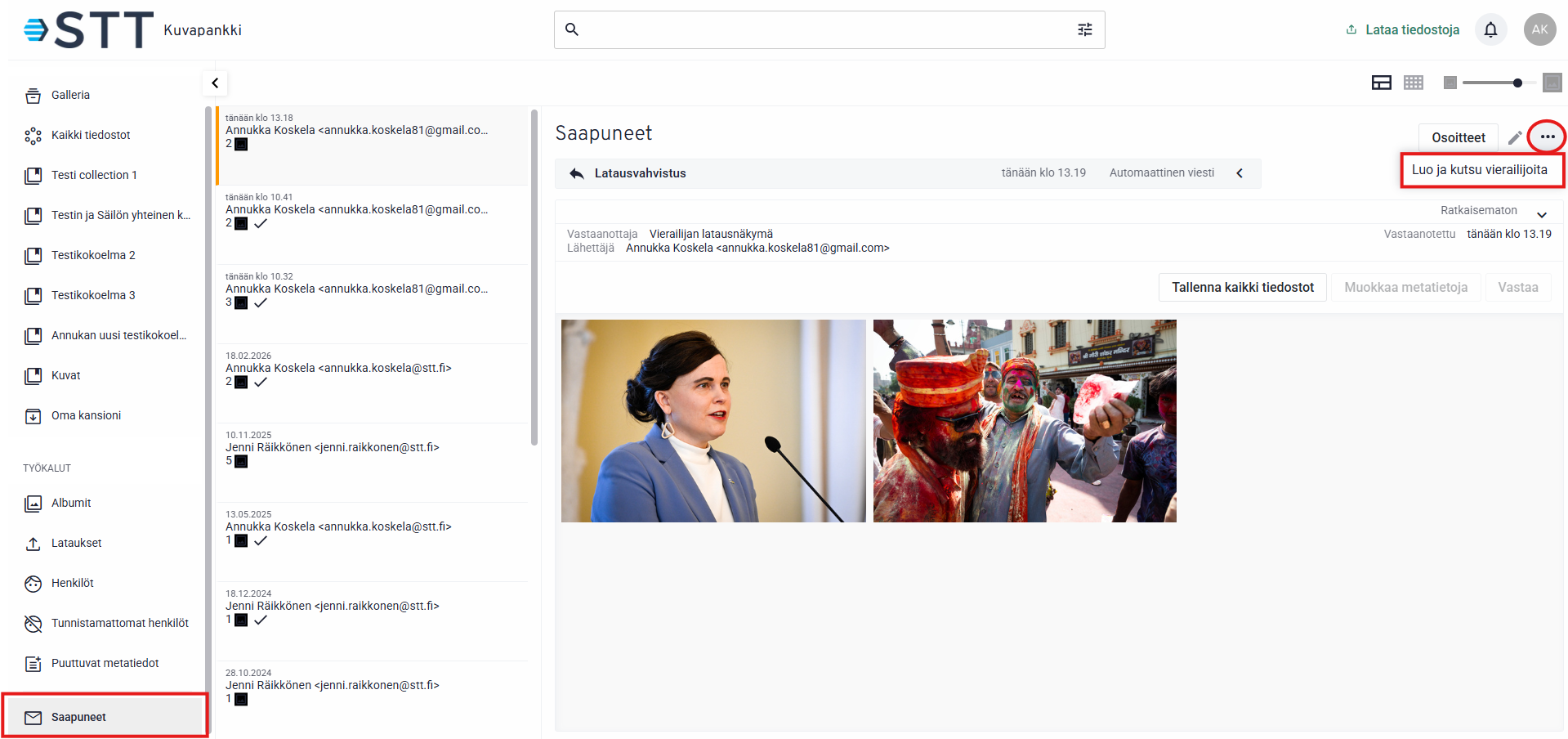 Sähköpostilla kutsumisen sijaan voit halutessasi luoda julkisen URLin, jonka kautta useat vieraskäyttäjät voivat ladata kuvia.