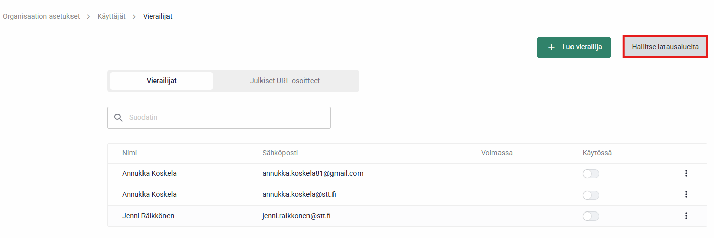 Voit halutessasi tehdä oman latausalueen ja käyttää sitä luodessasi julkista URL-osoitetta. Tee oma latausalue napauttamalla Hallitse latausalueita -painiketta.
